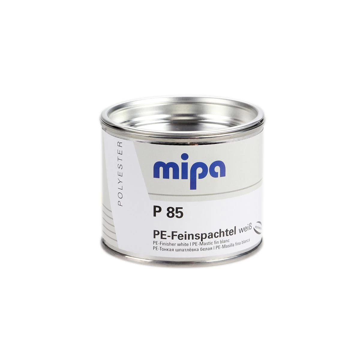 Mipa P85 styrolreduziert (250g) – ein auf Polyesterharz-Basis schleifbarer 2-Komponenten-Feinspachtel. Eine besonders gute Haftung auf Eisen, Stahl, verzinkten Untergründen und GFK. Mipa 85 eignet sich durch seine feine Korngröße und gute Deckkraft als Deck- und Feinspachtel zum Auftragen in dünnen Schichten als Deckschicht über PE-Füllspachtel. Vorhandene Poren oder kleine Unebenheiten werden dadurch geschlossen. Genauso werden kleine Lackschäden und Kratzer an der Karosserie problemlos beseitigt und eine Verarbeitung auf senkrechten Flächen ist möglich.