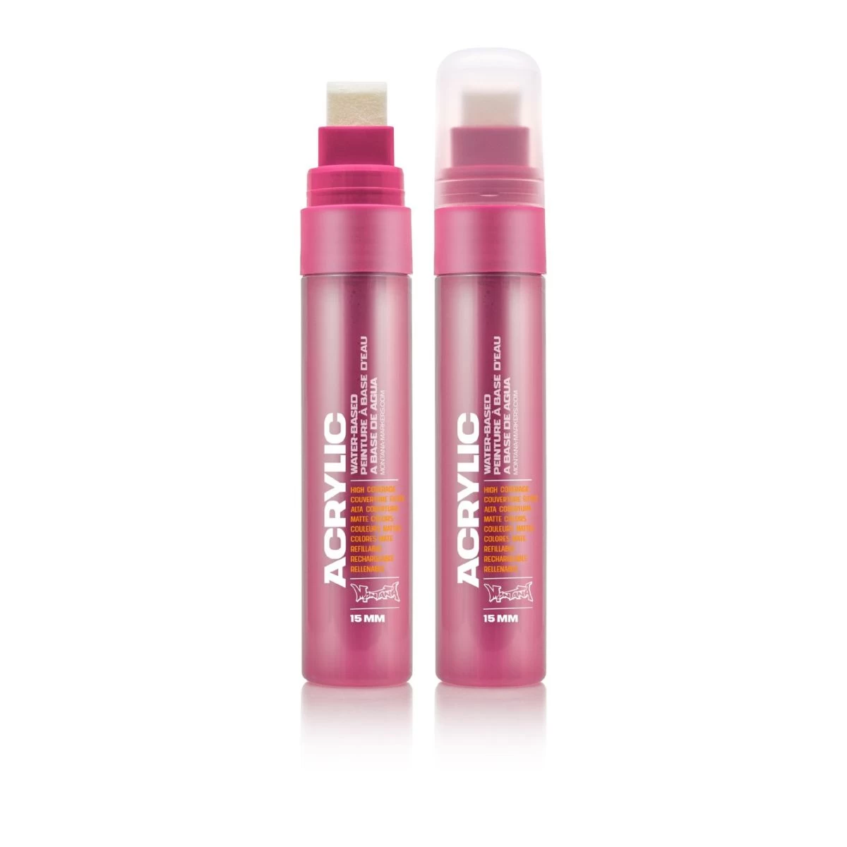 Die Montana ACRYLIC Marker 15mm BROAD sind im Montana ACRYLIC Marker-Sortiment die das Modell mit der breitesten Strichstärke. Die extra breiten Faserspitzen sind einerseits perfekt geeignet fu¨r einfache, konsequente Striche, andererseits auch für große kalligraphische Schriften und hervorragend zum Füllen großer Flächen.
