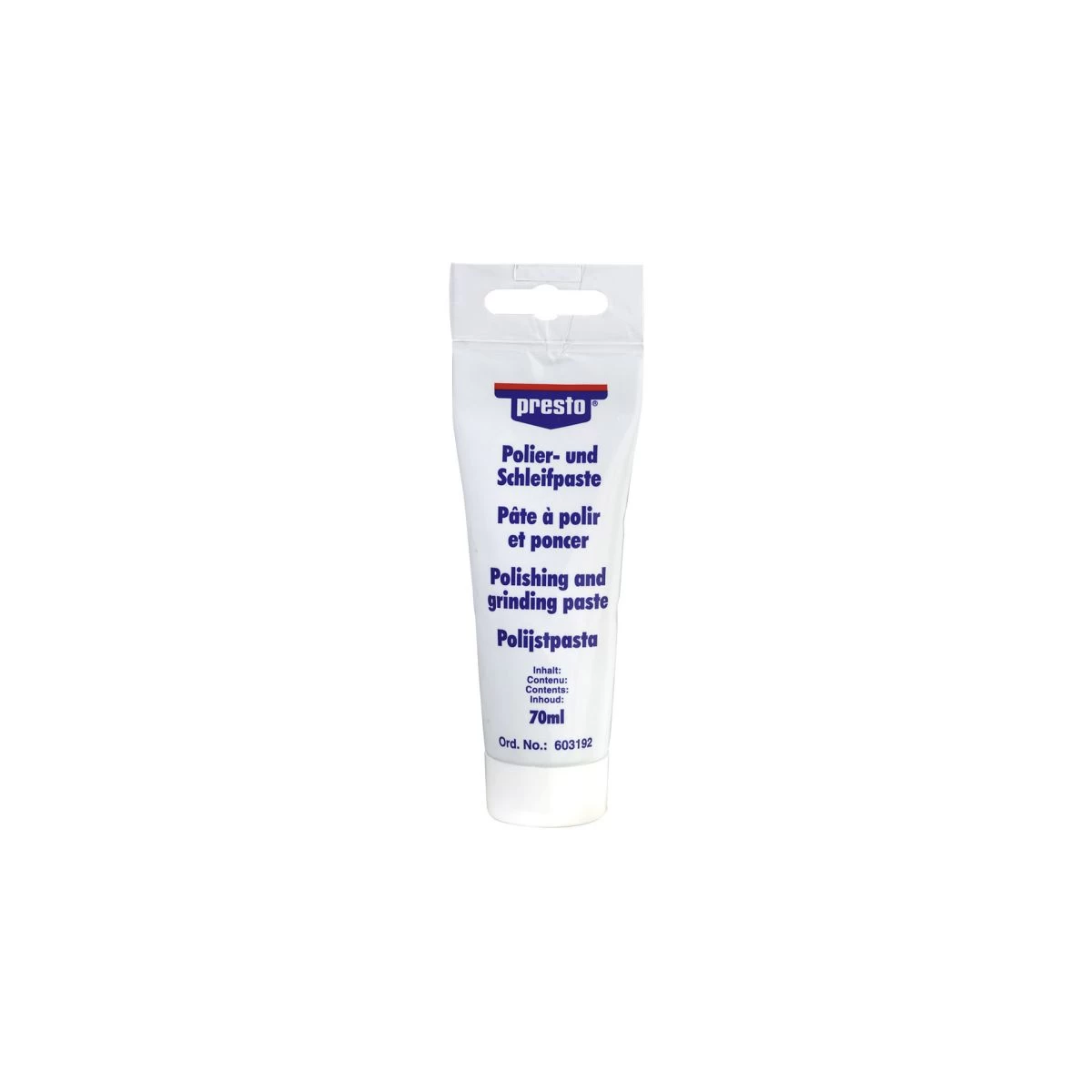 - Die presto Polier- und Schleifpaste mit einem nicht fusselnden Lappen dünn auftragen und gleichmäßig verreiben.