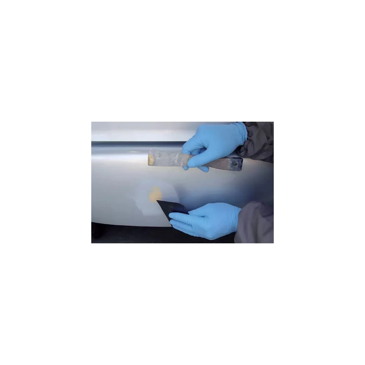 - Das angemischte Material in der gewünschten Schichtdicke auftragen und bei Bedarf mit 400er Nassschleifpapier nachschleifen.